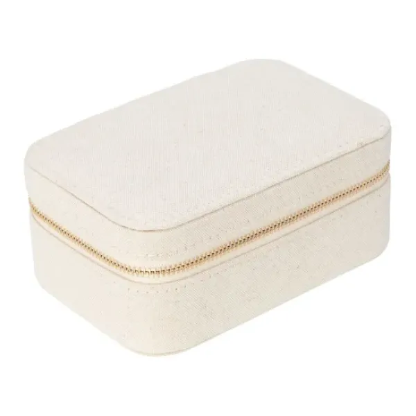 Tanskalaisen Pico Copenhagenin kaunis kankainen korurasia, jonka voit sulkea vetoketjulla. Sisällä erilaisia lokeroita sormuksille, ketjuille ja korvakoruille.