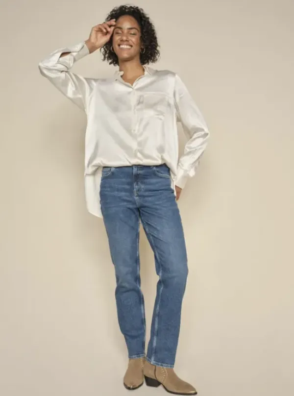 Mos Moshin uudet farkut suorilla lahkeilla. Kiva korkea vyötärö tekee näistä mukavat farkut joka lähtöön.