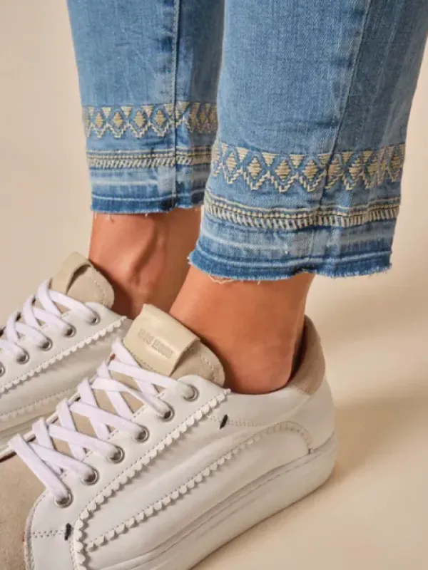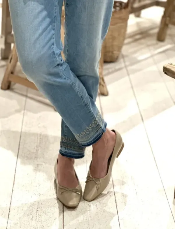 Mos Moshin kivat vaaleat farkut kapeilla lahkeilla. Näissä farkuissa on kivasti stretchiä, joten ne ovat mukavat jalassa. Tämä on ollut todella hyvin istuva malli! Nilkkapituus.
