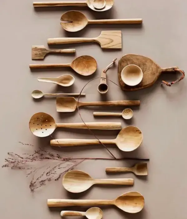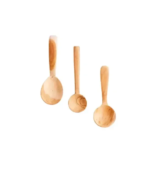 Kolmen kauniin puulusikan setti. Lusikat ovat keskenään erilaisia ja voit käyttää niitä ottimina.