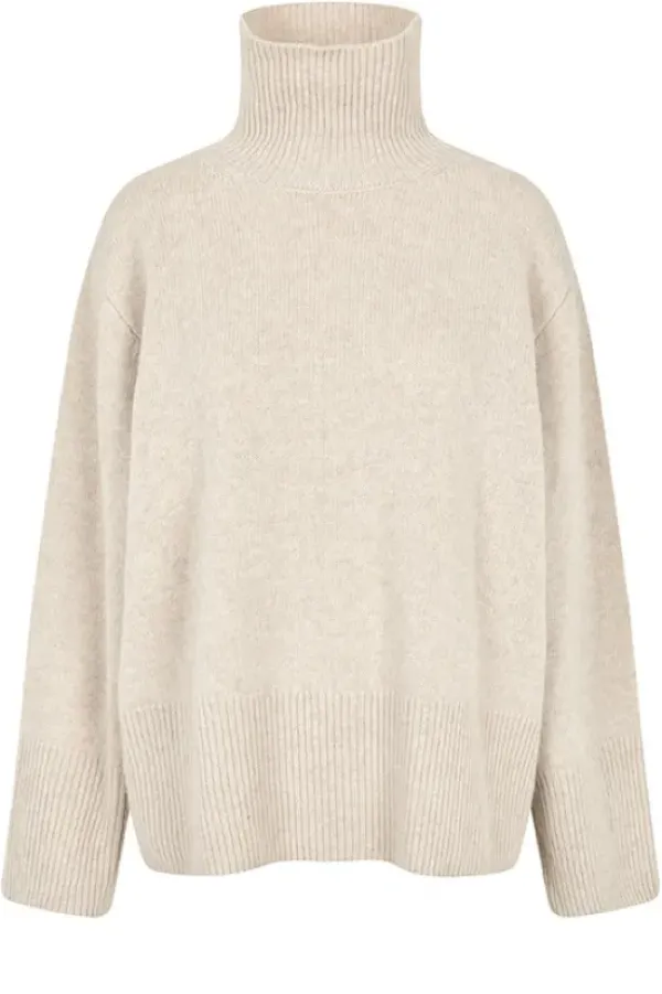 Second Femalen uutuusneule kivalla poolokauluksella. Mukava rento malli, joka on helppo yhdistää farkkujen, hameiden ja suorien housujen kanssa. Sävynä lämmin meleerattu beige.