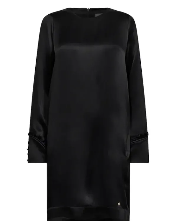 Mos Moshin uutta talven juhlakauteen: näyttävä Fay Glossi mekko rennolla leikkauksella. Kaunis kiiltävä kangas ja helman leikkaus tuovat ilmettä tälle mustalle, ajattomalle klassikolle. Kivasti takaa pidempi malli. Hihansuissa kauniit, päällystetyt napit.