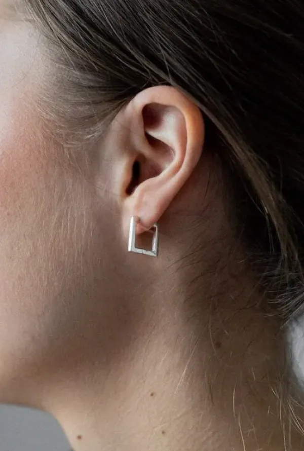 Kotimaisen Gauhar Helsingin graafinen avoin neliö hoop korvakoru, sterling hopeaa. Sirot, sekä kauniit korvakorut sopivat sellaisenaan asuun kuin asuun. Renkaaseen voit halutessa lisätä lisäosan kuten helmen.