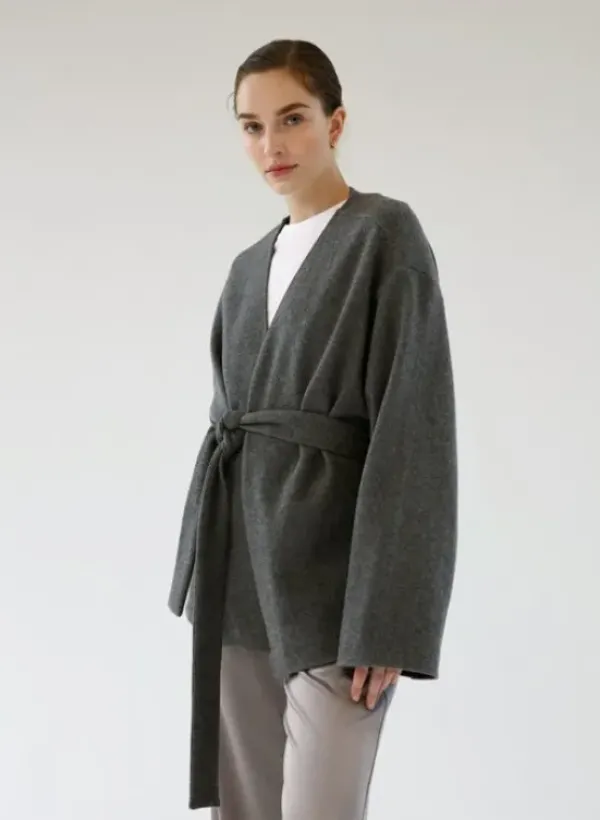 This wool coat is a classic style with a cosy twist. Made from a soft wool blend it has a shawl-inspired feel, wide sleeves and a self-tie belt to cinch the relaxed shape.