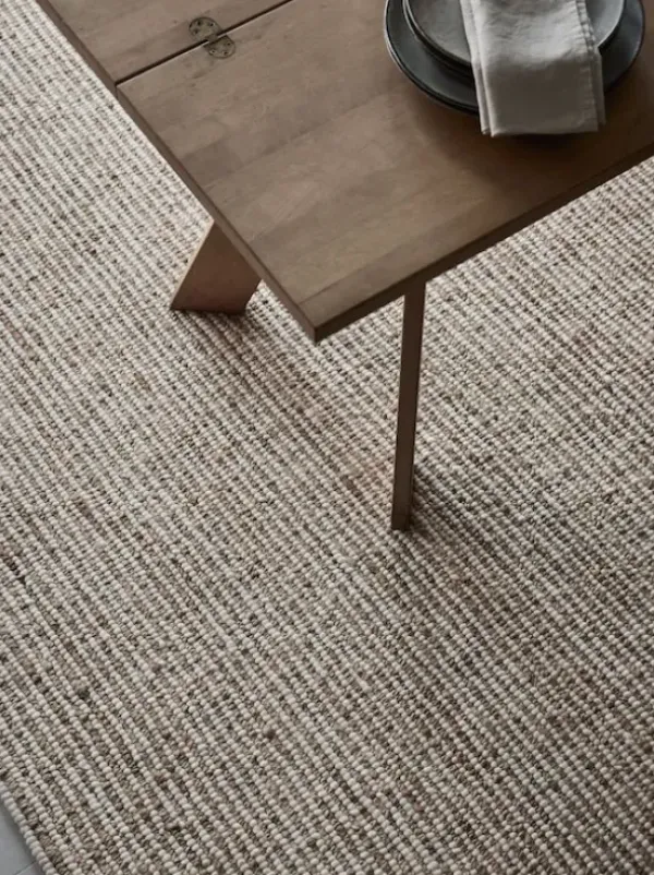 Tell Me Moren käsinkudottu hamppu-villamatto. Luonnollinen ja yksilöllinen. Värinä kaunis värjäämätön naturel hamppu 50% ja villa 50%.