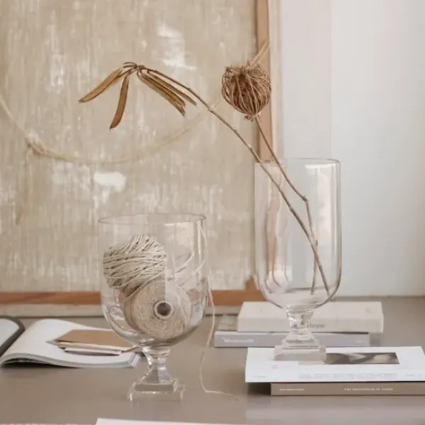 Tine K Homen lasinen hurrikaanimaljakko koristeeksi ja kukka-asetelmille. Kaunis myös kynttilän kanssa talvisessa kattauksessa.