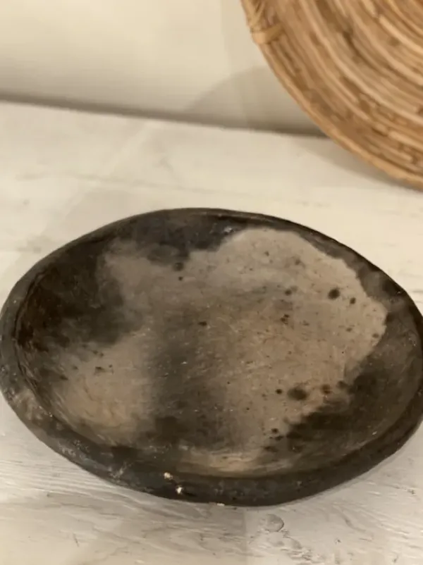 Tämä matala savivati on valmistettu käsityönä Tunisiassa. Jokainen tuote on yksilö. Ihana vati koristeeksi sellaisenaan tai pikkuaarteille.