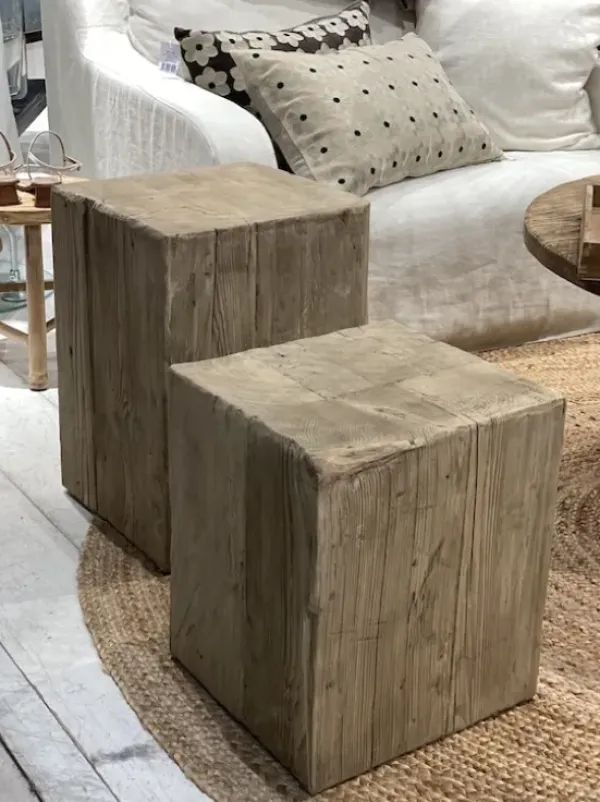 Snowdrops Copenhagenin ihastuttava natural sävyinen tukeva puujakkara, joka toimii istuimena, mutta myös yöpöytänä tai sivupöytänä. Nämä ”kuutiot” ovat todella painavia vanhasta puusta valmistettuja yksilöitä, joten kestävät isomman miehenkin alla. <3