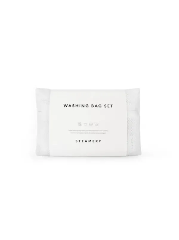 Konepyykille tarkoitetut vetoketjulla suljettavat Steamery Stockholmin pesupussit, joiden tarkoitus on suojata vaatteita pesun aikana.