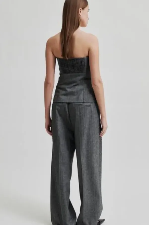 Second Femalen tyylikäs toppi kalanruotokuviolla. Takana kuminauhat ja sivulla vetoketju. Villasekoitetta. Vuoritettu.
