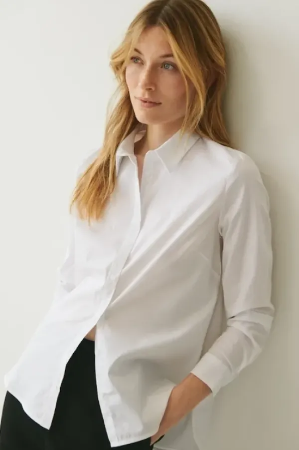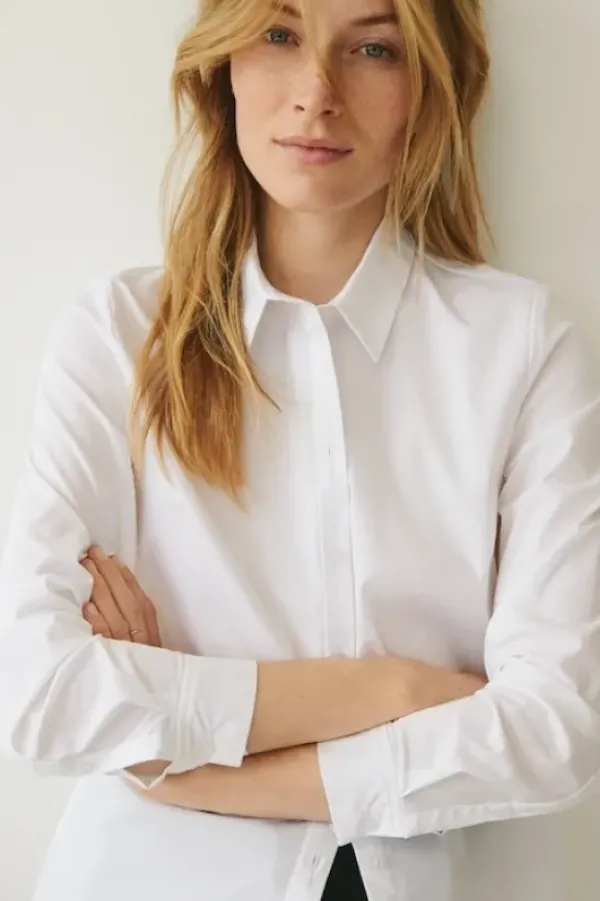 Part Twon klassinen paitapusero, jossa selkäpuolella istuvuutta lisäävä kaunis laskos. Pitkät hihat. Puuvillasekoitetta.