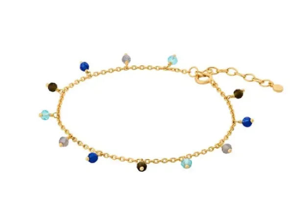Talven sinisestä hetkestä inspiraationsa saanut rannekoru, jossa korukivinä kultainen obsidiaani, sininen kalsedoni, vaaleansininen topaasi, ioliitti. Säädettävä pituus.