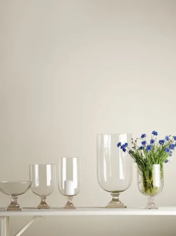 Tine K Homen lasinen hurrikaanimaljakko koristeeksi ja kukka-asetelmille. Kaunis myös kynttilän kanssa talvisessa kattauksessa.