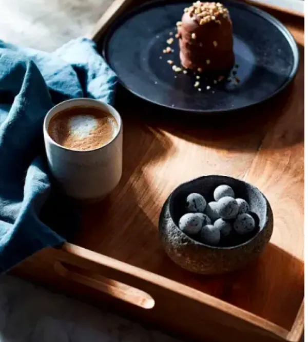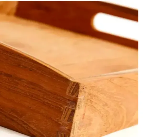 Tanskalaisen Muubsin rosoinen, käsintehty tarjotin, jjossa toimivat kahvat. Puinen tarjotin tuo kivan ilmeen kattaukseen tai keittiöön. Rustiikkinen look. Materiaalina kaunis tiikki.