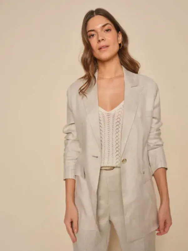 Mos Moshin klassinen, vuoriton pellavableiseri rennolla leikkauksella. Edessä taskut ja yhden napin kiinnitys. Hihansuissa napit. Materiaalina mukava pellavan ja viskoosin sekoite.