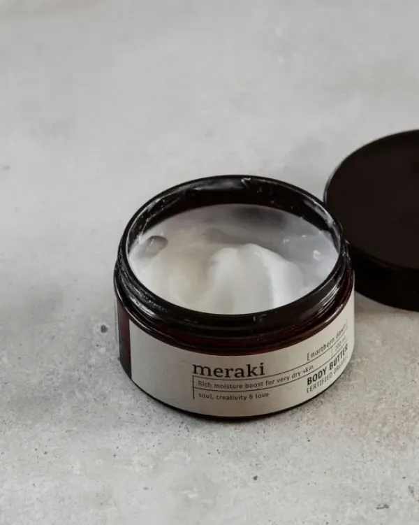 Merakin ihastuttavan tuoksuinen vartalovoi jättää ihon pehmeäksi ja joustavaksi, mutta ei kuitenkaan tahmaiseksi.