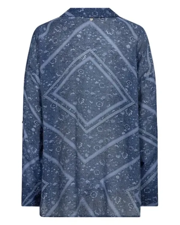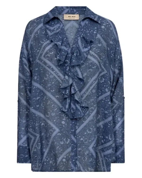 Mos Moshin näyttävä viskoosipusero frillakauluksella. Rento, suora malli.