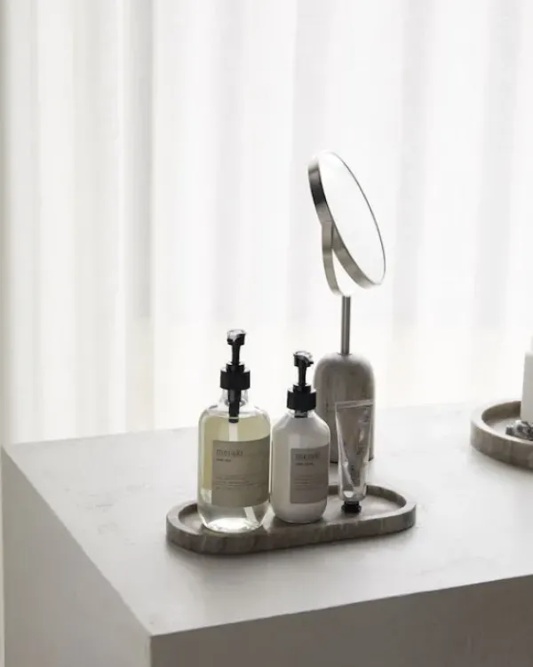 Merakin kaunis pidempi marmoritarjotin toimii säilyttimenä kylpyhuoneessa, eteisessä, makuuhuoneessa, kattauksessa… Kaunis, ajaton tuote tuo luonnollista ilmettä kotiisi!