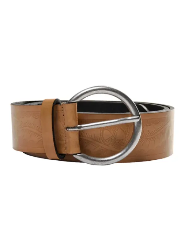 Kaunis hiekanvärinen nahkavyö, jossa pinnassa kiva lehtikuviointi. Viimeistele asusi kauniilla, klassisella nahkavyöllä. Kaksi pituutta.