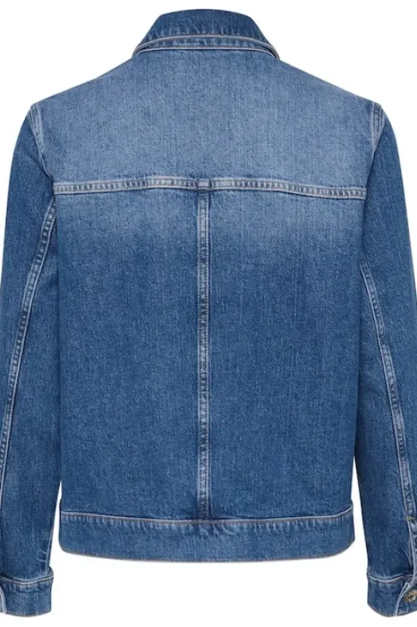 Part Twon kaunis, keskisininen farkkutakki, jossa kivat taskut tuomassa ilmettä. Kulutettu värjäys. Yhdistä housujen, hameen tai mekon kanssa keväinen farkkulook!