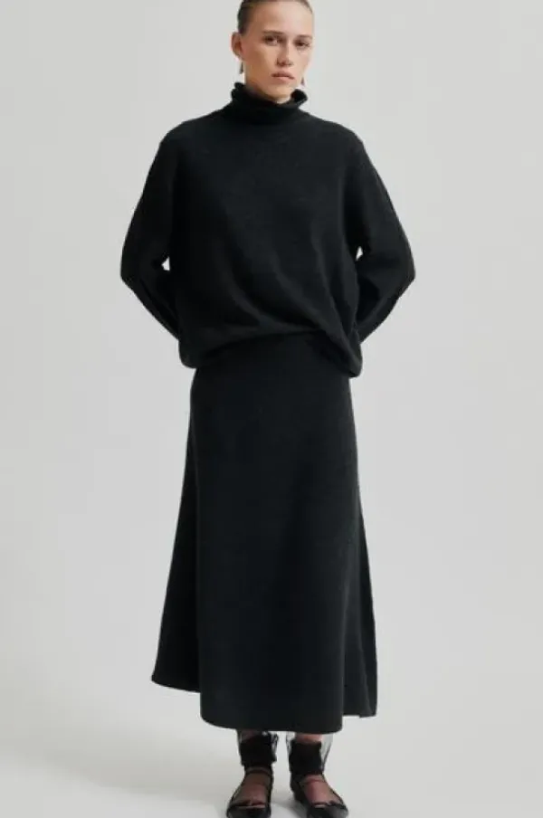 Second Femalen merinovillainen rento pooloneule. Neuleessa ilmettä tuomassa päärmäämättömät helmat, hihansuut ja kaulus. Yhdistä saman sarjan hameen kanssa kiva syksyinen look!