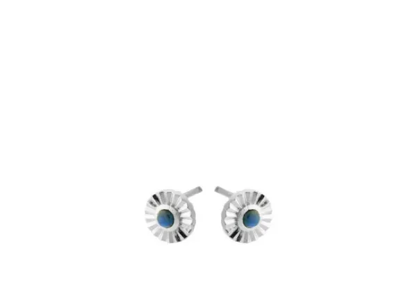 Syksyn kauniista sävyistä inspiraationsa saaneet korvikset, joissa korukivenä sininen rainbow moonstone. Koko 8 mm.