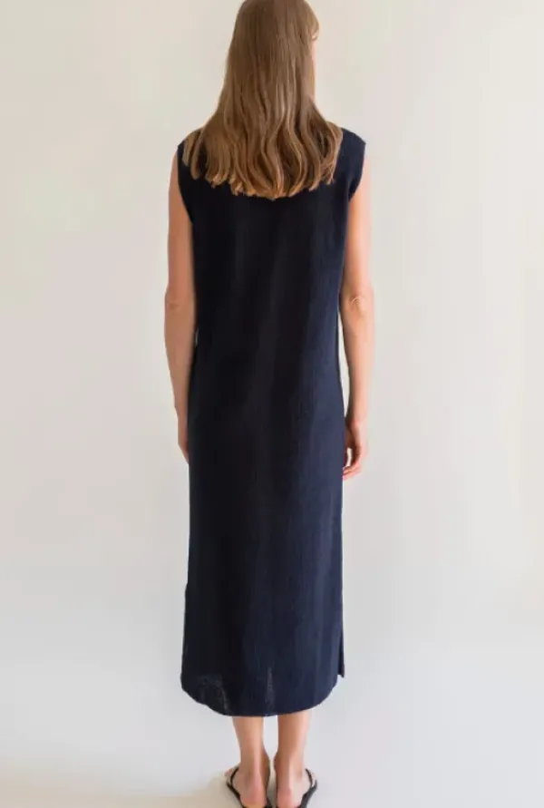 Gauhar Helsingin maksipituinen pellavamekko kesän lämpimiin päiviin! Mekko on valmistettu kevyestä, hienosta pellavasta, jossa kaunis neulospinta. Klassinen v-kaulus ja solmittava irtovyö, jolla voi halutessa korostaa vyötäröä.