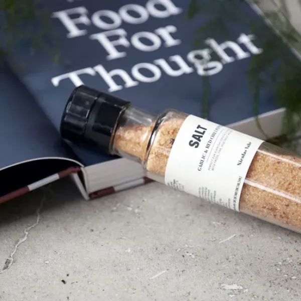Spice your food with a salt blend from Nicolas Vahé. The salt is mixed with garlic and red chilli pepper and is the perfect companion for all types of meat. The decorative grinder can be left out on the table as decoration when not in use. The mill comes with a ceramic grinder which gives you finely ground spices. This releases the oils for more aroma and flavour in your dishes.