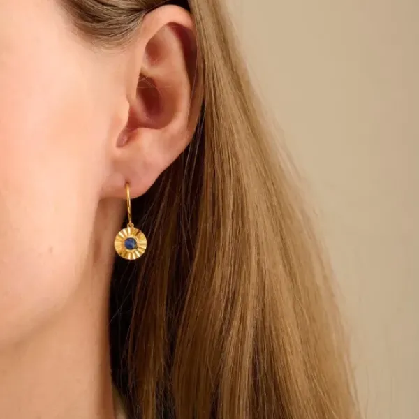 Syksyn kauniista sävyistä inspiraationsa saaneet korvikset, joissa korukivenä sininen rainbow moonstone. Koko 22 mm.
