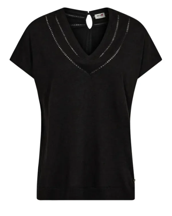 Mos Moshin kaunis t-paita pitsibrodeerauksella. V-kaula-aukko, jossa selän puolella nappikiinnitys. Materiaalina viskoosin ja hampun sekoite.