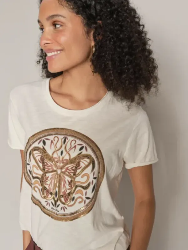 Mos Moshin rento uutuus t-paita kivalla printillä! Paljetit tuovat kivan lisäefektin tähän paitaan. <3 Rento malli, sävynä luonnonvalkoinen.