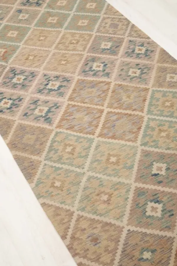 Ruotsalaisen Bargin tyylikäs Kelim -matto villaa. Matot ovat käsityötä, joten jokainen on yksilönsä! Me niiin tykätään <3