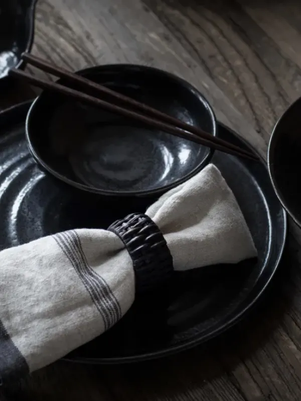 Tell Me Moren perinteinen pellavainen raita servetti luonnolliseen tyyliin! Voit käyttää myös pöytätablettina kattauksen alla.