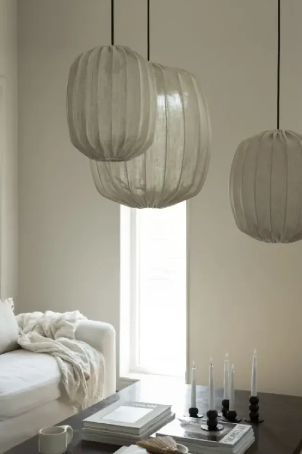 Kaunis kattovalaisin, jossa metallikehikko ja pellavakangas. Valo hohtaa pellavakankaan läpi luoden eläväisen ilmeen. Prisma 25 sopii täydellisesti pienen keittiönpöydän yläpuolelle, pareittain keittiösaarekkeen päälle tai olohuoneen pimeään nurkkaan. Sopii myös ryhmäksi sarjan muiden valaisimien kanssa yhdistettäväksi.