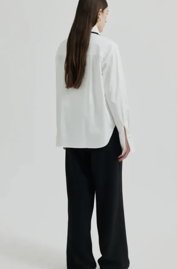 Second Femalen klassinen puuvillainen paitapusero, jossa mukana kaunis, irrotettava solmuke/solmio tuomassa ilmettä. Suora malli, jossa selkäpuolella leikkaukset parantavat istuvuutta. Pitkät hihat.