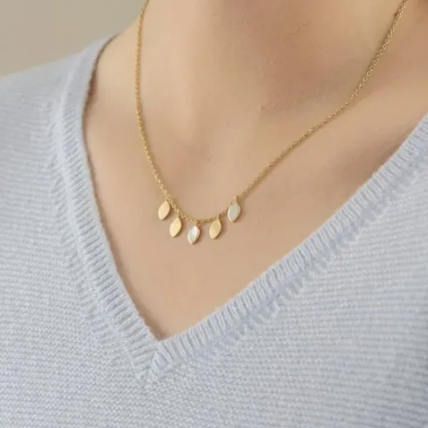 Kaunis Flake kaulakoru, jossa hiutaleita, joukossa myös helmiä. Yhdistä muihin saman sarjan koruihin.