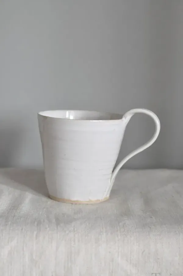 Kotimaisen Tuiasin valkoinen keraaminen muki, n. 5 dl. Dreijattu ja lasitettu. Nämä Tuiasin astiat ovat helppo yhdistää minkä tahansa astiaston kaveriksi!
