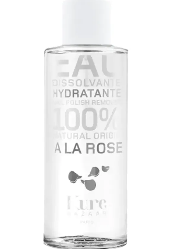 Kure Bazaarin innovatiivinen kynsilakanpoistoaine koostuu 100 % luonnollisista ainesosista, kuten sokeriruo’osta, vehnästä ja maissista. Ei sisällä asetonia, etyyliasetaattia tai tuoksuja, eikä sitä ole testattu eläimillä. Kynsilakanpoistoainevesi (Eau dissolvante), kuten Kure Bazaar tuotetta kutsuu, on hellävaraisen kaksifaasisen ”öljy vedessä” -koostumus. Se sisältää runsaasti silikonia sisältävää bambu-uutetta ja ainesosiamme, mukaan lukien ruusuöljyä ja ruusuvettä aidoista damaskiiniruusuista sekä eteeristä patsuliöljyä antiseptisen vaikutuksen aikaansaamiseksi.