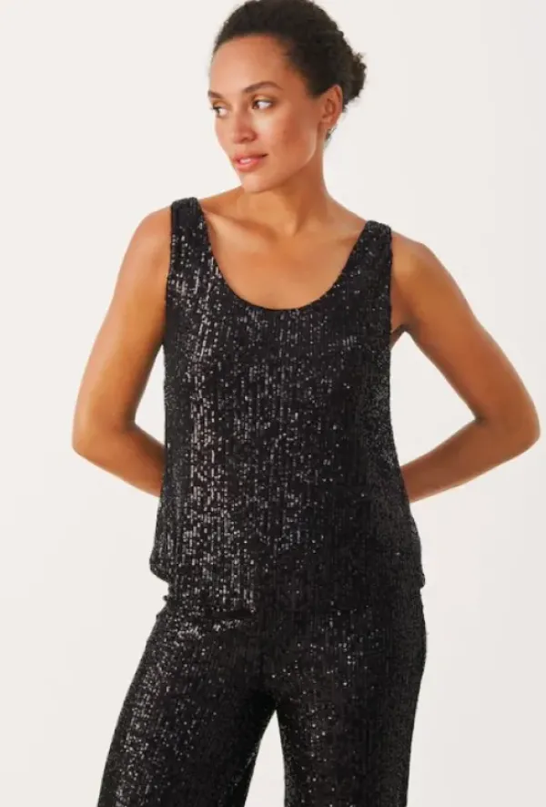 Part Twon uutta loppuvuoden juhliin. Ihana musta glittertoppi! Yhdistä saman sarjan housujen, nahkahousujen tai hameen kanssa kivoin bilelook!