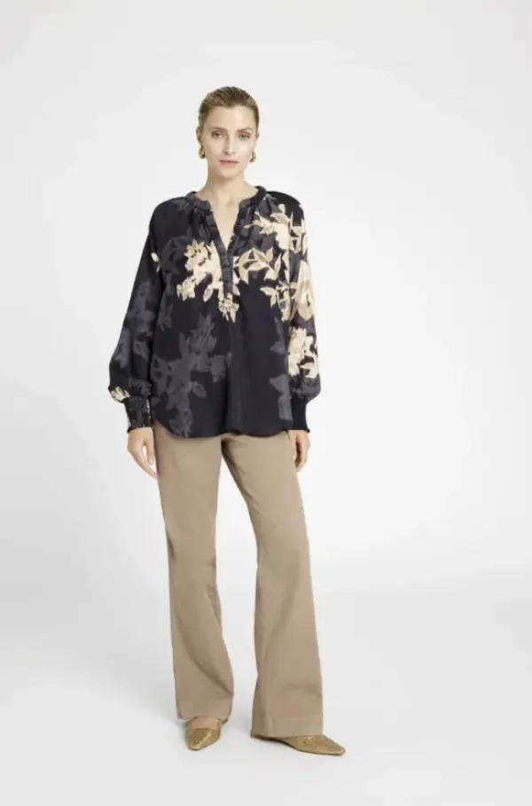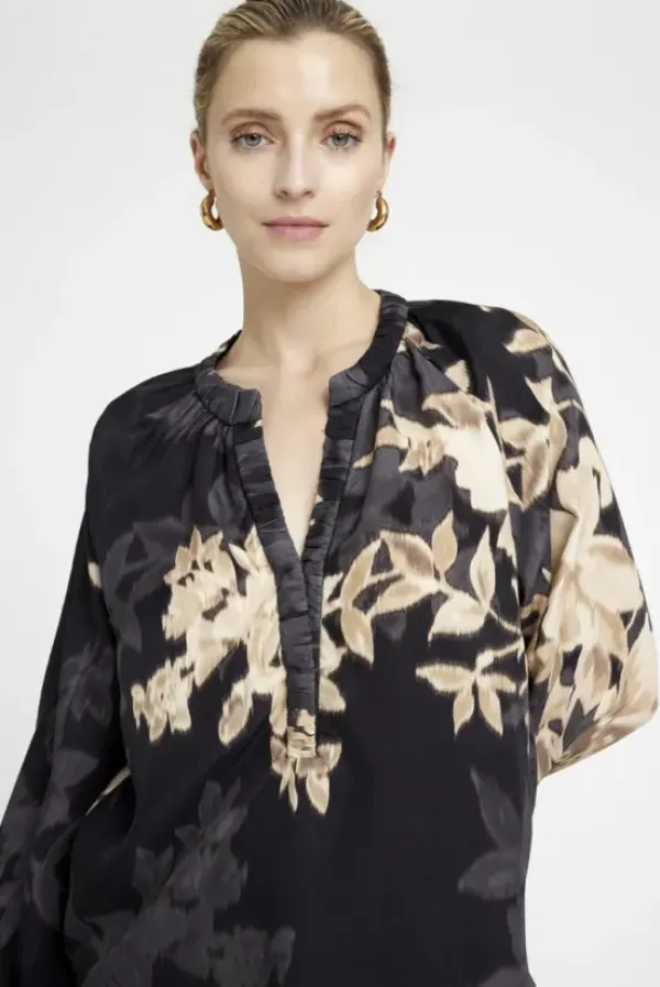 Tanskalaisen Gustavin kaunis kuviollinen pusero, joka sopii hyvin kaupungille, toimistolle tai juhlaan. Materiaalina viskoosin ja cupron sekoite, joka on miellyttävä päällä.