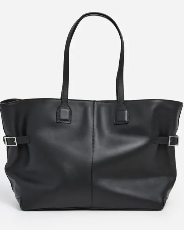 Flatteredin suureen suosioon noussut Lesley tote bag nyt mustassa nahassa. Laukussa on runsaasti tilaa tärkeillä tavaroille.