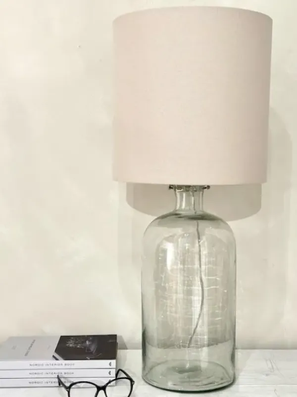 Kaunis pöytävalaisin lasisella jalalla.