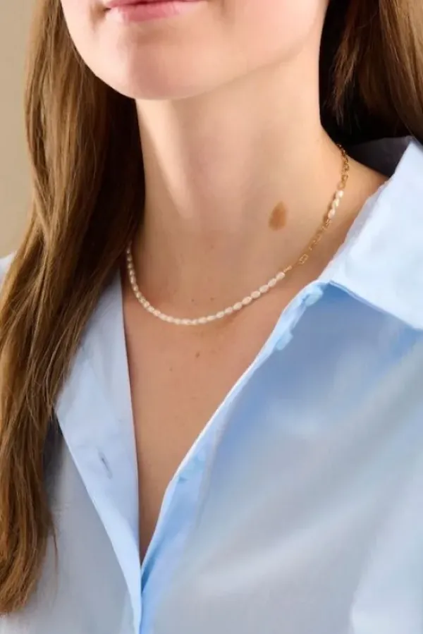 Seaside kaulakorussa on yhdistetty luonnollisia helmiä kullattuun hopeaketjuun, mikä tuo korulle herkkää ilmettä! Yhdistä Pernillen muiden korujen kanssa tai pue yksinään!