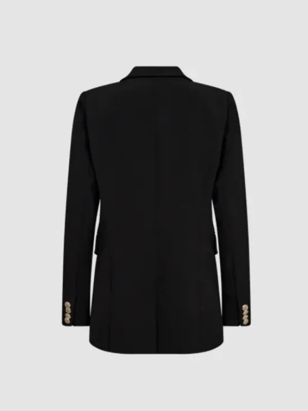 Mos Moshin kaunis musta bleiseri, jossa näyttävät kullan sävyiset napit tuomassa ilmettä. Napit kahdessa rivissä edessä sekä hihansuissa.