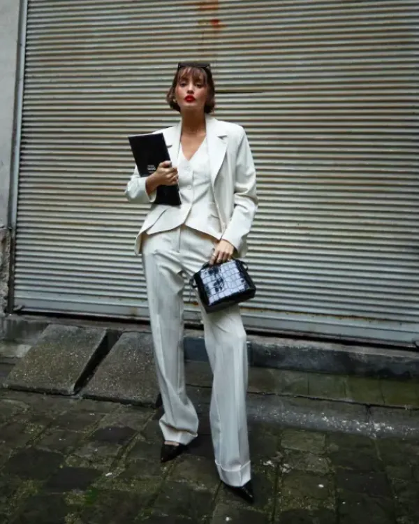Käsilaukussa on sekä lyhyt että pitkä säädettävä musta nahkahihna. Sisällä pienempi nahkasta tehty sisätasku. Käsilaukun voi sulkea helpon magneettinapin avulla.