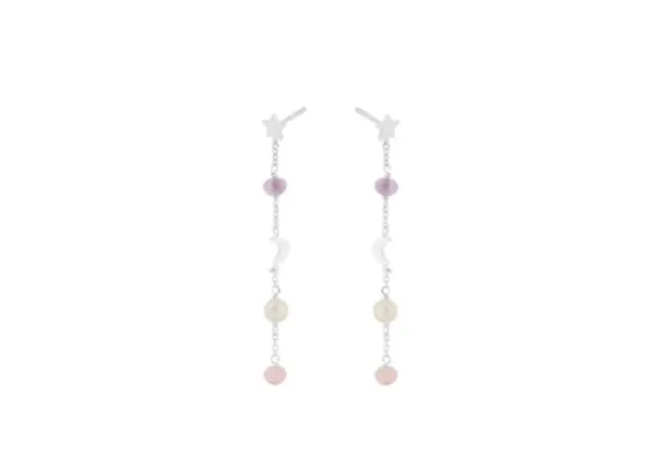 Ihanat ketjukorvikset pastellinsävyisillä kivillä! Korviksen pituus 45 mm.