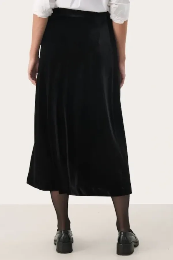 Part Twon kauniisti kiiltävä samettihame talven juhliin! Ihana naisellinen kevyesti levenevä malli, jossa kuminauhavyötärö. Kangas joustavaa veluuria.