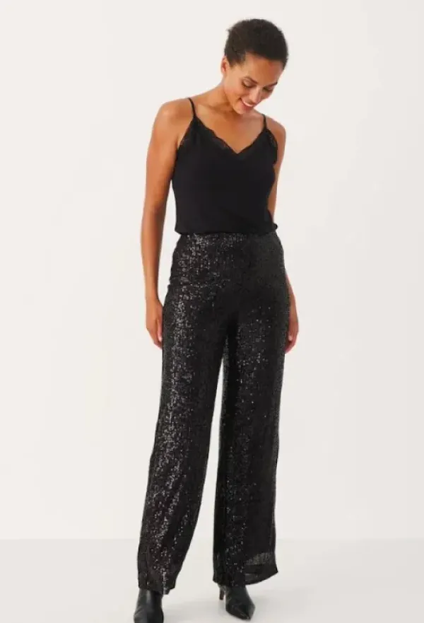 Part Twon näyttävät kimaltavat mustat bilehousut paljeteilla! Yhdistä saman sarjan topin kanssa coolein pikkujoululook!