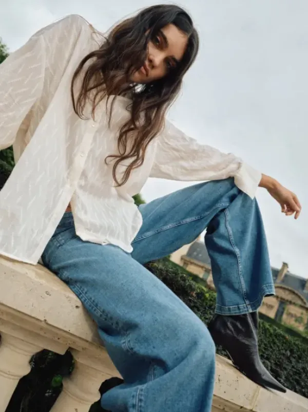 Mos Moshin sesongin uutta: keskisiniset leveälahkeiset farkut pitkillä lahkeilla. Näissä farkuissa on kiva leikkaus taskuissa. Mukavan pehmeä materiaali ja korkea vyötärö tekevät näistä taatusti kevään lempparit!