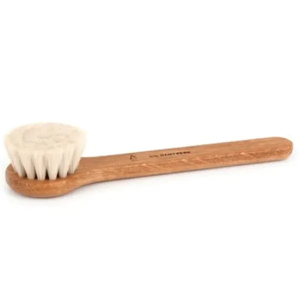 Iris Hantverk pehmeä, hevosenharjaksinen kasvoharja soveltuu kosteaan käyttöön, koska se on pestävissä.